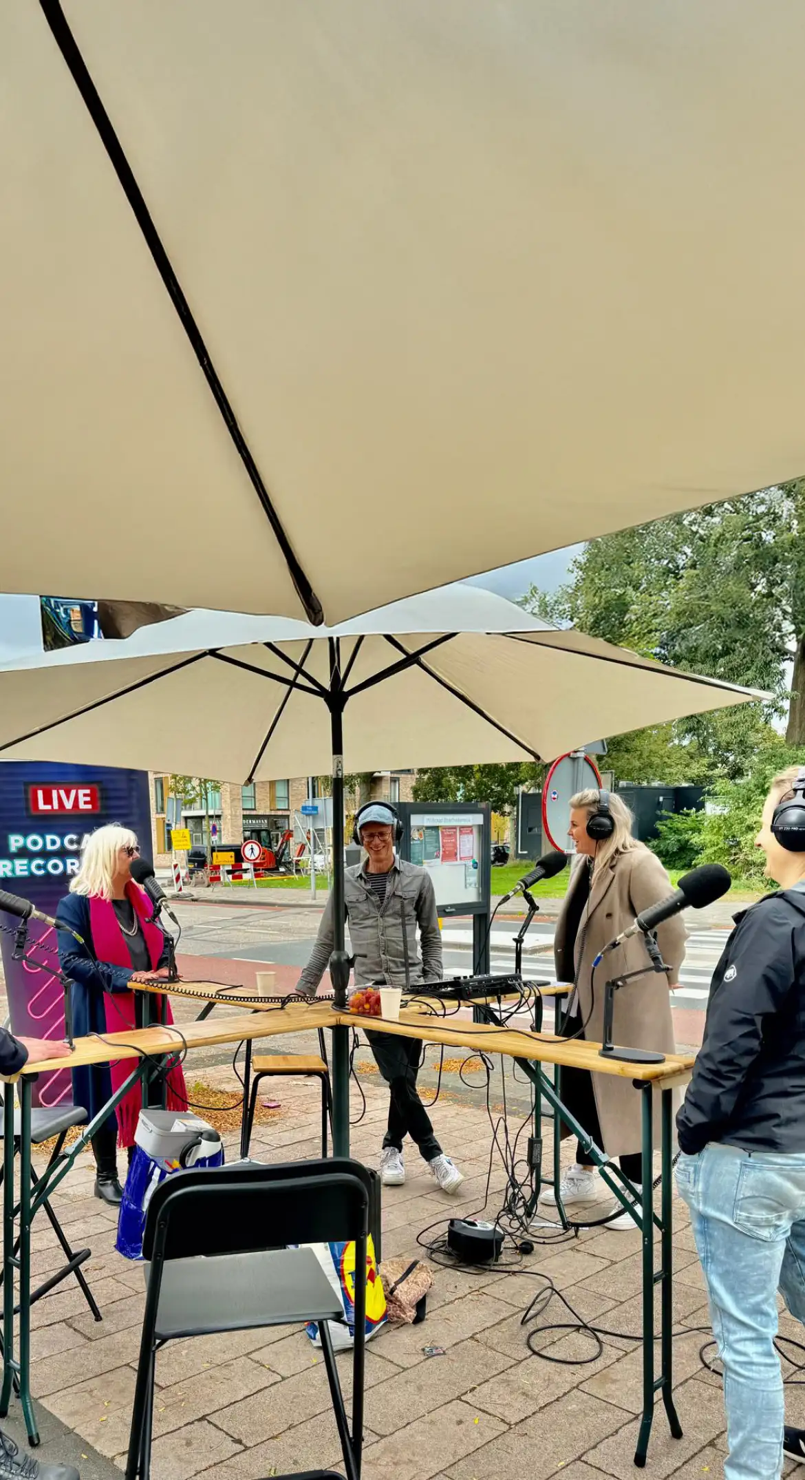 Daarom vind je ons vaak onderweg: met een mobiele studio op straat, een microfoon in het groen, of gewoon bij jullie aan tafel in het bedrijfsrestaurant. Altijd op zoek naar het echte verhaal. Dat is de basis van een professionele podcast.